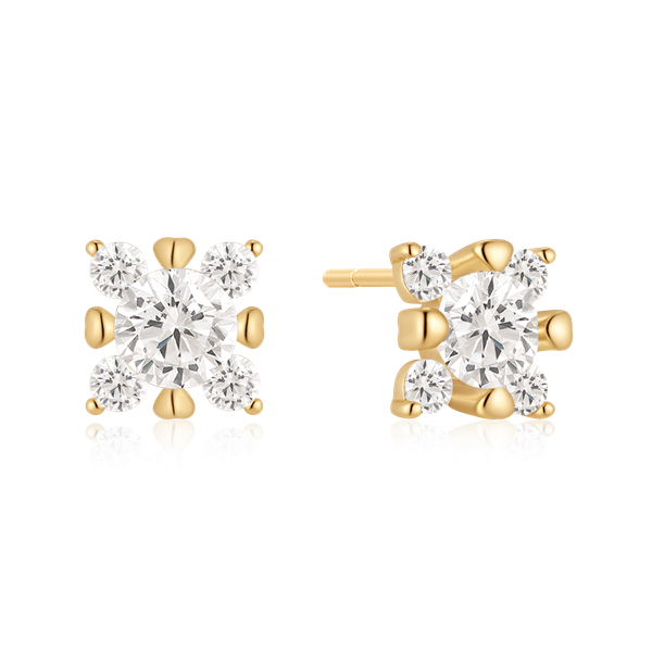 Sølvforgyldt ørestikker dobbelt blomster med syntetiske cubic zirconia.