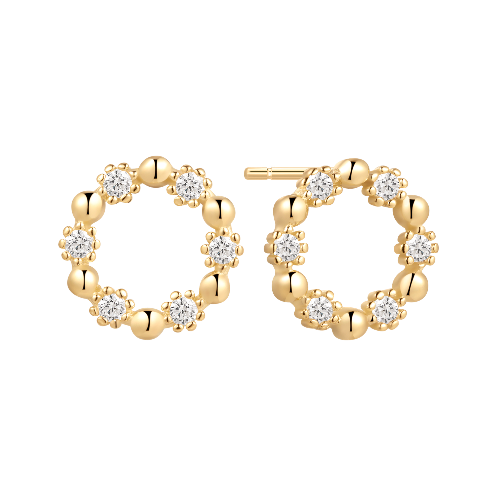 These silver-plated earrings from Støvring Design showcase a masterful circular design that combines sophistication with versatility. The alternating pattern of metallic beads and sparkling cubic zirconia stones creates an eye-catching display, perfect for professional meetings and cultural events alike.