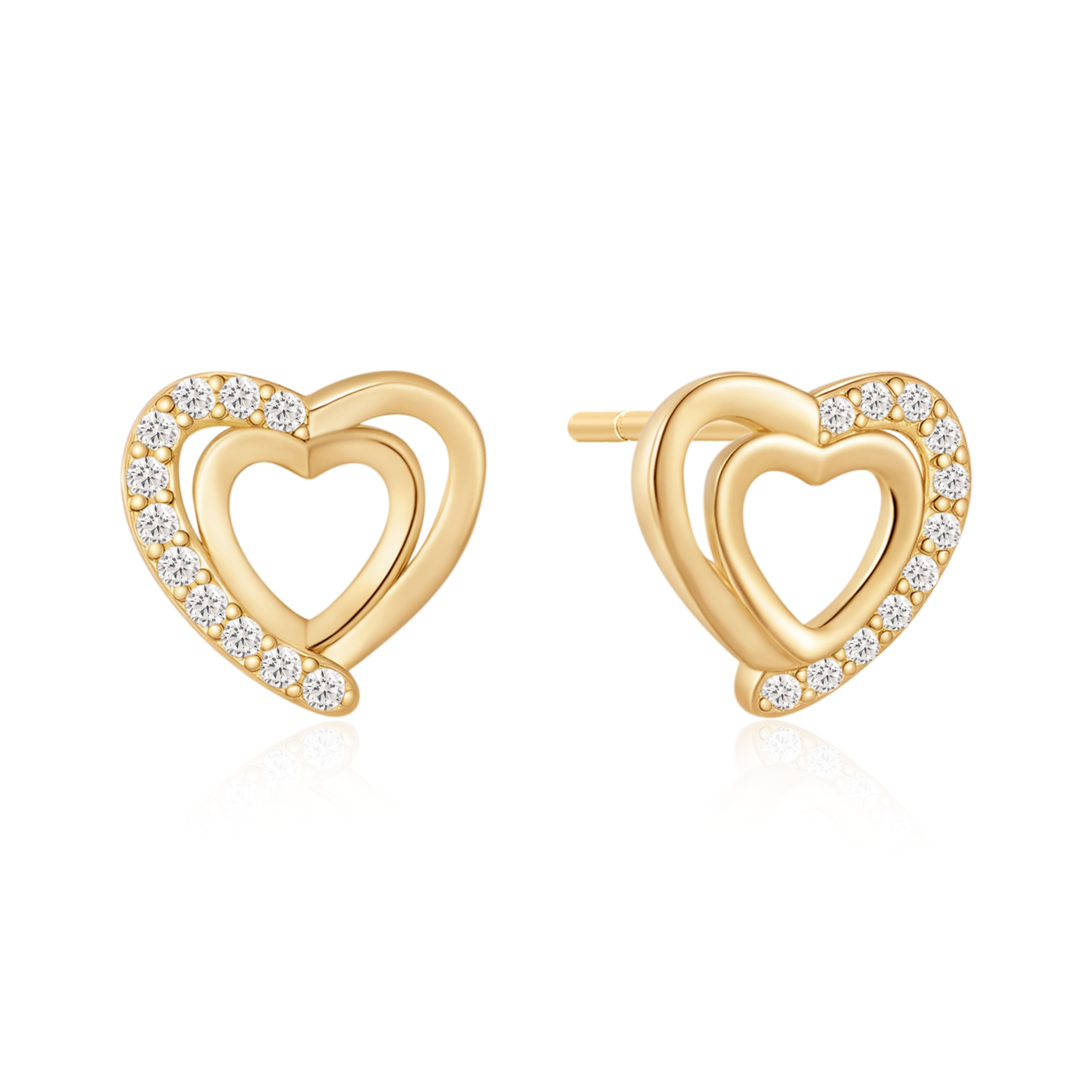 The Sølvforgyldt ørestikker from Støvring Design features an enchanting double heart design that creates a sophisticated silhouette. Each earring showcases carefully placed synthetic cubic zirconia stones along the outer edge, creating a delicate sparkle that catches the light beautifully, making it perfect for both intimate celebrations and grand occasions.