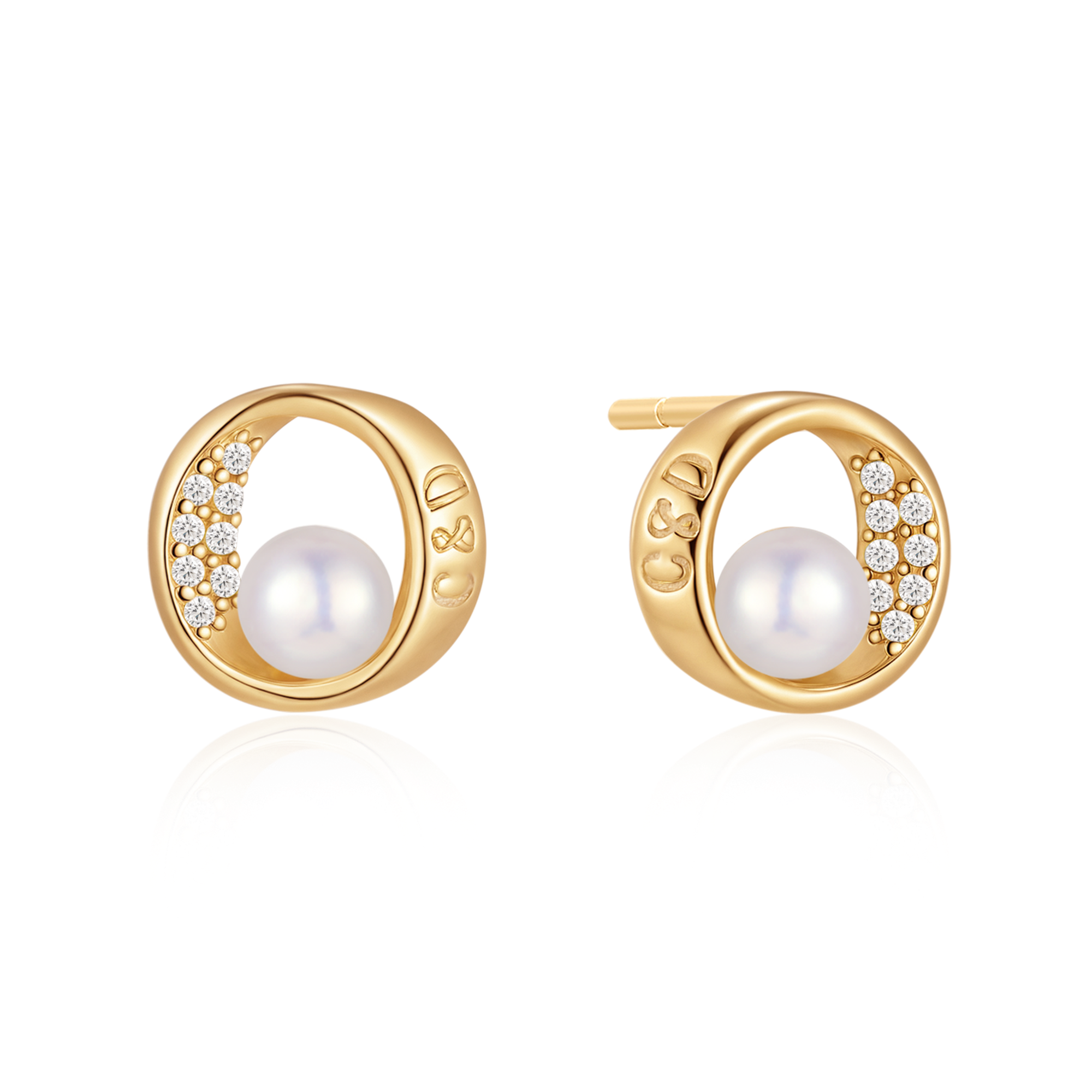 Sølvforgyldt ørestikker oval med syntetiske cubic zirconia og ferskvandsperle.