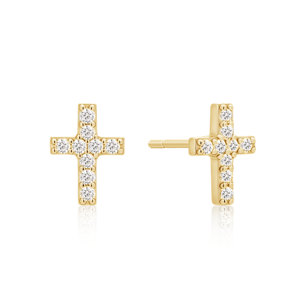 Sølvforgyldt ørestikker kors med syntetiske cubic zirconia.