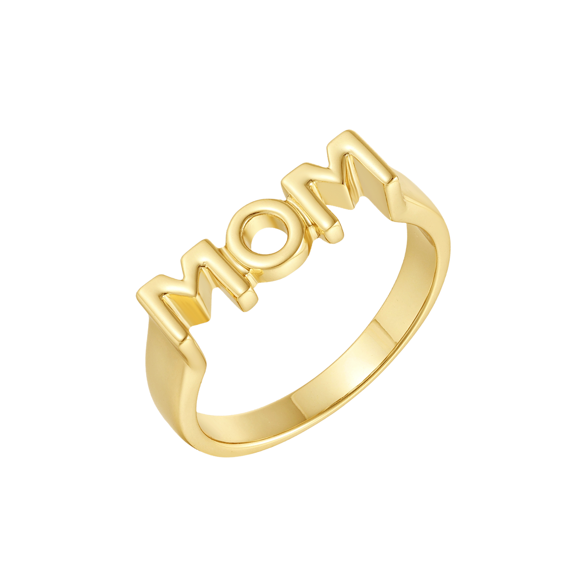 Sølvforgyldt ring rhodineret med "MOM" på toppen af ringen.