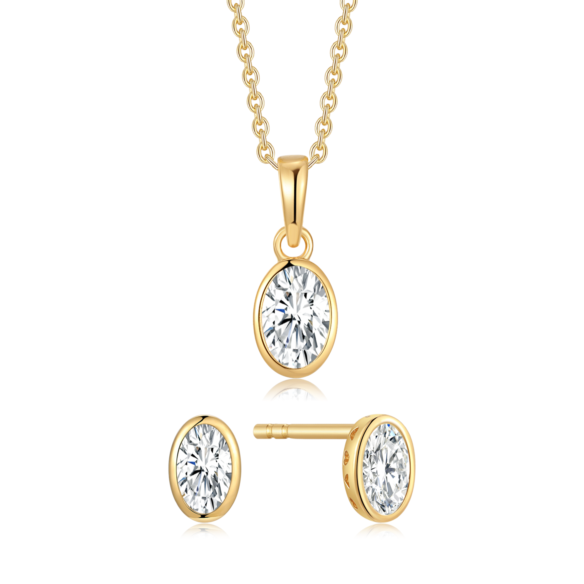 Sølvforgyldt sæt oval med en syntetisk cubic zirconia.