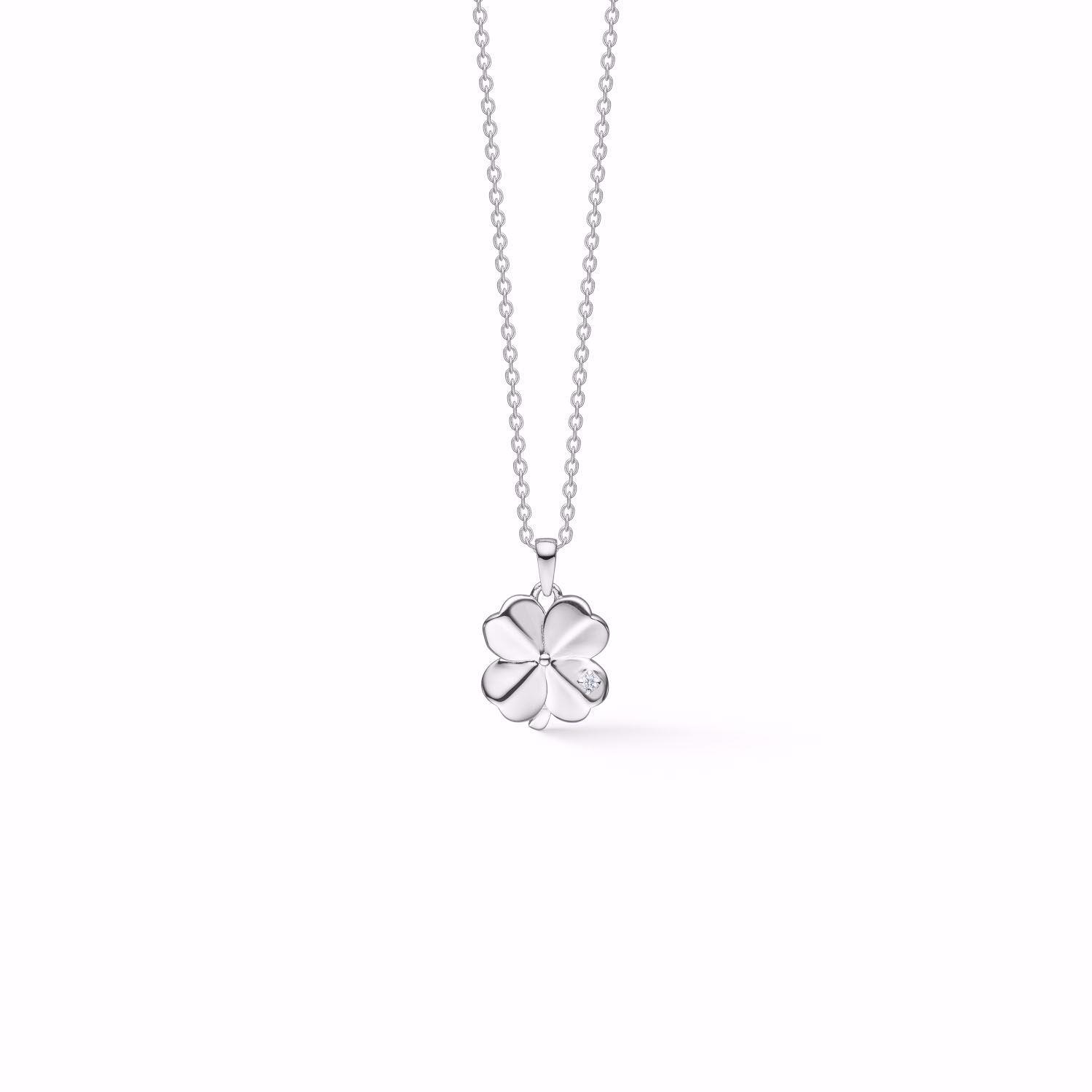 Sølvvedhæng firkløver med cz og kæde