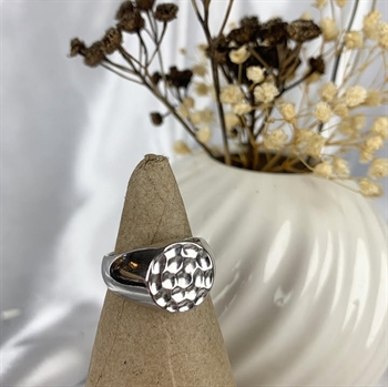 Signet finger ring in sterling silver with wavy surface. To the ring you will find matching earrings., Ø 13 mm at the top