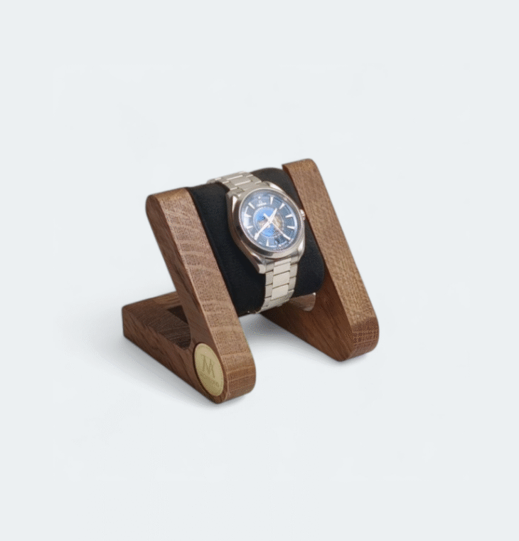 Watch stand in dark oak - place your watch with style! - multiple leather colors